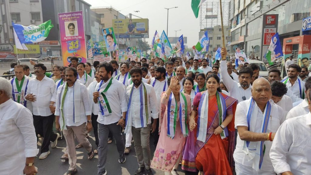 నవతరం: విశాఖపట్నం: నేడు ప్రభుత్వ మెడికల్ కళాశాలను ప్రైవేటీకరణ చేయద్దుఅని విశాఖజిల్లాలో అన్ని నియోజకవర్గాల ప్రజల నుండి సేకరించిన సమన్వయ కర్త వాసుపల్లి గణేష్ కుమార్, వెస్ట్ నియోజకవర్గం మల్ల విజయ ప్రసాద్, తూర్పు నియోజకవర్గం వర్గం మొల్లి అప్పారావు, గాజువాక నియోజకవర్గం తిప్పల దేవన్ రెడ్డి, భీమిలి నియోజకవర్గం నుంచి చిన్న శ్రీను గారు ఆదేశాలు మేరకు సిరమ్మ, ఎం ఎల్ సి వరుదు కల్యాణ్ ఆధ్వర్యంలో వైఎస్ఆర్ కాంగ్రెస్ పార్టీ కేంద్ర కార్యాలయంకు పంపించే కార్యక్రమంలో గౌరవ విజయనగరం జిల్లా జడ్పీ చైర్మన్ జిల్లా పార్టీ అధ్యక్షులు మరియు భీమిలి నియోజకవర్గం సమన్వయకర్త శ్రీ మజ్జి శ్రీనివాసరావు గారు ఆదేశాలు మేరకు తనకుమార్తె చిన్న శ్రీను సోల్జర్స్ అధ్యక్షురాలు సిరమ్మ గారు పర్యవేక్షణలో సోమవారం ఉదయం 10:00 గంటలకు భీమిలి నియోజకవర్గం నుంచి పెద్ద ఎత్తున పాల్గొని జీవీఎంసీ ఎదురుగా ఉన్న గాంధీ విగ్రహం నుండి మొత్తం 6 నియోజక వర్గాలు తో ప్రారంభమైన ఈ ర్యాలీ మద్దిలపాలెంలోని తెలుగు తల్లి విగ్రహం వరకూ కొనసాగింది. ఈ ర్యాలీ కార్యక్రమంలో చిన్న శ్రీను సోల్జర్స్ అధ్యక్షురాలు సిరమ్మ పాల్గొనడం జరిగింది. ఈ సందర్భంగా ఆమె మాట్లాడుతూ పార్టీ అధినేత శ్రీ వైయస్ జగన్ మోహన్ రెడ్డి గారి ఆదేశాలు మేరకు చేపట్టిన ఈ కార్యక్రమంలో ప్రజలు పెద్ద ఎత్తున పాల్గొనడం సంతోషం అన్నారు. కూటమి ప్రభుత్వం చేపట్టిన పీపీపీ విధానం సరియైనది కాదని ప్రజలు ఈ సంతకాలుతో రుజువు చేశారన్నారు. ప్రయివేటీకరణ మూడేళ్ళ ముచ్చటే మళ్ళీ జగనన్న వచ్చి మన కాలేజీలు మన తెస్తాడు. చంద్రబాబు నీకు ఈ ఆనందం కొన్ని రోజులే అంటూ ధ్వజమెత్తారు. పార్టీ కార్యకర్తలు ఈ కార్యక్రమాన్ని పెద్ద ఎత్తున విజయవంతం చేసినందుకు కృతజ్ఞతలు తెలిపారు. కార్యక్రమంలో మాజీ ఎమ్మెల్సీ పండుల రవీంద్రబాబు, తైనాల విజయ కుమార్ చింతలపూడి వెంకట రామయ్య, డిప్యూటీ మేయర్ కటుమూరి సతీష్, రాష్ట్ర ఎగ్జిక్యూటివ్ కౌన్సిల్ సభ్యులు ఎస్సిసి గొలగాని హరి వెంకట కుమార్ శ్రీనివాస (మాజీ మేయర్, జివిఎంసి), జియాన్ శ్రీధర్