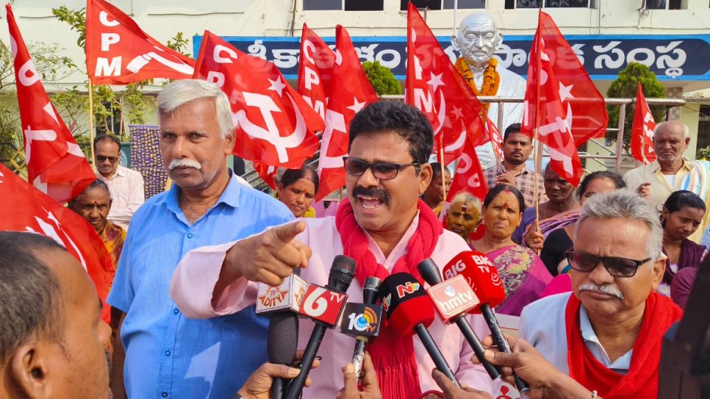 కేంద్ర ప్రభుత్వం తెస్తున్న వికసిత్ భారత్ గ్యారంటీ ఫర్ రోజ్ గార్ అండ్ అజీవిక మిషన్ (విబి-జి రాం జి) పేరుతో ఉపాధిహామీ చట్టనికి “రాంరాం” పలకనున్నారని అన్నారు. పని హక్కుగా ఉన్న పాత చట్టాన్ని మార్చి ఇదొక సాధారణ పథకంగా అమలు చేయనున్నారు. ఇప్పటి వరకు వ్యవసాయ కార్మికులకు డిమాండును బట్టి ఉపాధి కల్పించే విధానాన్ని మార్చివేసి అవసరాన్ని బట్టి పనులు పెట్టడం అంటే ఈ పథకం మౌలిక స్వభావాన్ని నిర్వీర్యం చేయడమే. మోడీ ప్రభుత్వం ఈ పథకంలోని మహాత్మా గాంధీ పేరును తొలగించి ద్రోహం చేస్తుందని అన్నారు. ఉపాధి హామీ పథకం అమలులో కీలకమైన రాష్ట్రాల భాగస్వామ్యం కొత్త బిల్లు వల్ల నామమాత్రంగా మారుతుంది. మరోవైపు 10 నుండి 40 శాతానికి రాష్ట్రాలపై భారం పెంచారు. ఇప్పటికే యంత్రాలు కేటాయించి కూలీల డిమాండ్ తగ్గించారు. వ్యవసాయ పనుల పేరుతో 60 రోజుల ఉపాధిని సస్పెండ్ చేసి ఈ పథకాన్ని రైతులకు పోటీగా మారుస్తుందని విమర్శించారు.ఈ పథకం అమలుకు ఇప్పటి వరకు కేంద్రం ఇస్తున్న 90% నిధులను 60 శాతానికి తగ్గించి రాష్ట్రాలపై వేల కోట్ల అదనపు భారం వేస్తున్నారు. మన రాష్ట్రంపై ఏటా సుమారు నాలుగు వేల కోట్లు అదనపు భారం పడనుంది. ఇప్పటికే లక్షల కోట్లు అప్పుల్లో వున్న రాష్ట్రం ఈ అదనపు భారాన్ని ఎలా భరించగలదు? మోడీ ప్రభుత్వానికి కీలక మద్దతు గా వున్న తెలుగుదేశం, జనసేన పార్టీలు కొత్త ఉపాధి బిల్లును ఉపసంహరించుకునేటట్లు కేంద్రంపై ఒత్తిడి తేవాలని డిమాండ్ చేశారు. మన రాష్ట్రానికి చెందిన అన్ని పార్టీల ఎంపీలు పార్లమెంటులో దీన్ని వ్యతిరేకించాలని డిమాండ్ చేశారు సిపిఎం పార్టీ జిల్లా కార్యదర్శి వర్గ సభ్యులు కోనారి మోహనరావు, గంగరాపు సింహాచలం మాట్లాడుతూ ఉపాధి హామీ చట్టాన్ని నిర్వీర్యం చేసే కుట్రలకు వ్యతిరేకంగా ఉద్యమాలు ఉదృతం చేస్తామని హెచ్చరించారు, డిసెంబర్ 22వ తేదీన వామపక్షాల ఆధ్వర్యంలో ధర్నా కార్యక్రమం జయప్రదం చేయాలని కోరారు. ఈ కార్యక్రమంలో సిపిఎం పార్టీ నాయకులు పోలాకి ప్రసాదు, యం . గోవర్ధన రావు, ఆర్ ప్రకాష్, ఎ లక్ష్మి, మహేష్ ఎం లలిత, అల్లు సోమశేఖర్, చందు, నగేష్ తదితరులు పాల్గొన్నారు.